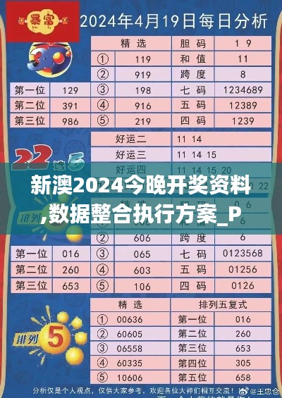 随着新的一年的到来,彩民们对新澳彩票的期待愈发高涨,特别是新澳彩票在即将到来的2024年所推出的创新变革,如增加开奖频率、提高奖金以及增强开奖过程的透明度等,都使得彩民们为之兴奋不已,本文将为您详细解读新澳彩票在今晚的开奖情况,并深入探讨其背后的数据整合执行方案,以及新澳彩票未来的展望。